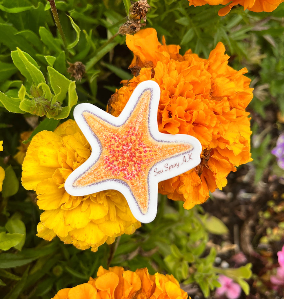 Small Yellow and Orange Starfish Vinyl Sticker. Beach Style. Nautical Gift.